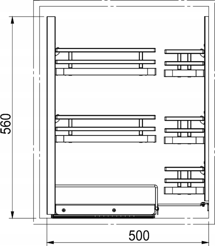 - system funkcjonalnego zagospodarowania przestrzeni szafek kuchennych dolnych