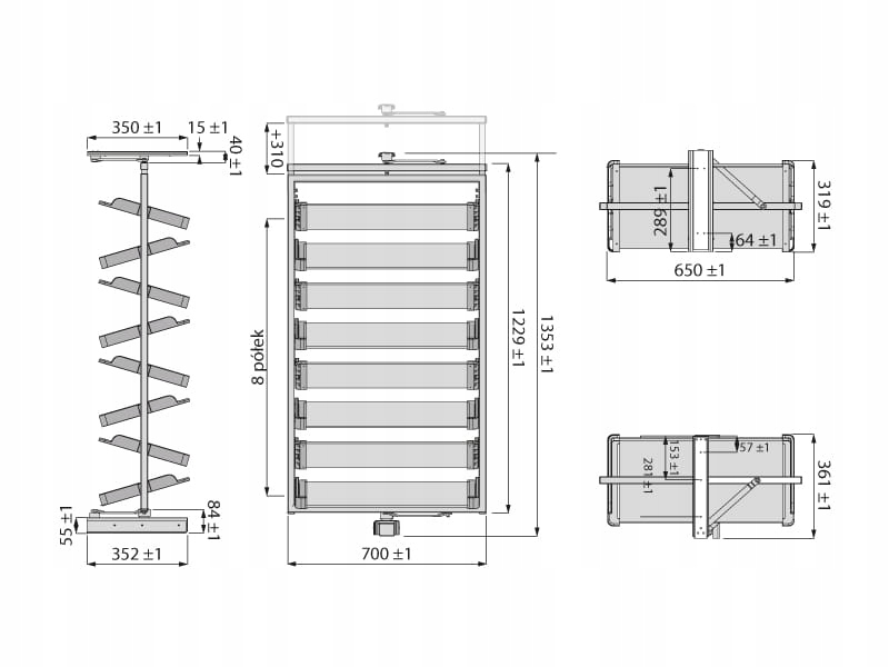• Ilość półek: 8