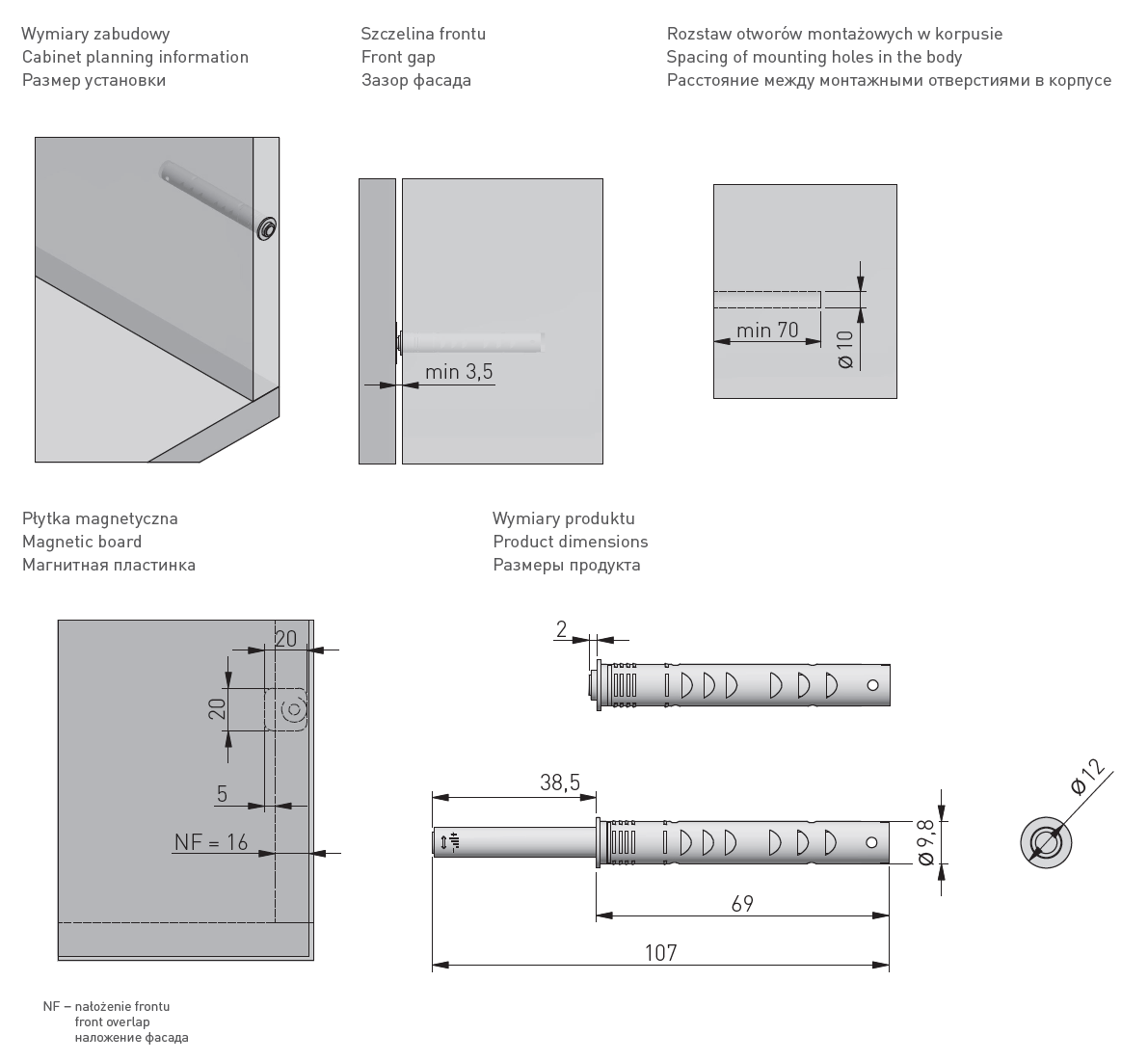 Doskonale sprawdza się we frontach wyposażonych w mechanizmy push to open oraz w frontach montowanych na zawiasach samootwierających. Jego konstrukcja opiera się na materiałach o wyjątkowej wytrzymałości, co gwarantuje niezawodność i trwałość.