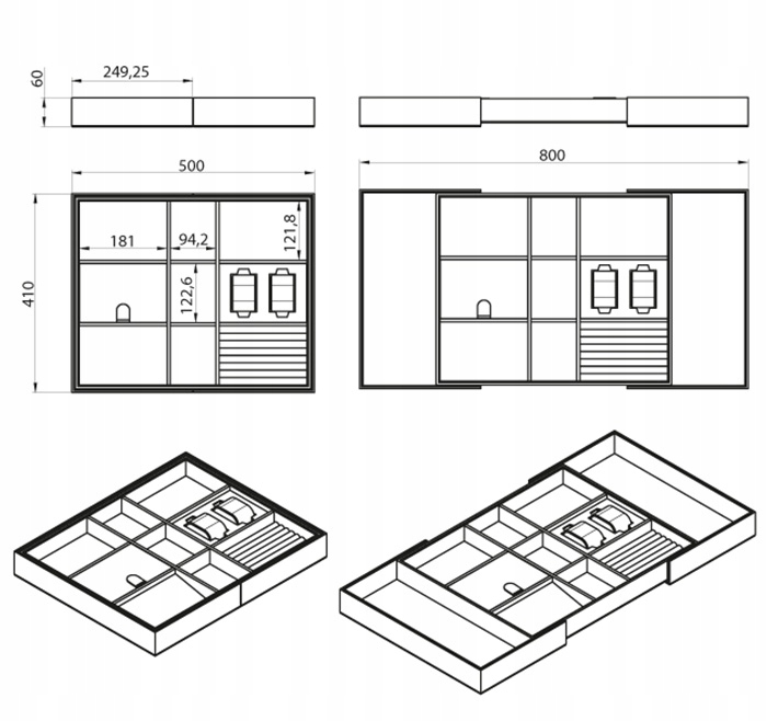 ✅ Regulacja szerokości pozwala na dokładne przystosowanie organizera do swojej szuflady, również przy niestandardowych wymiarach garderoby.