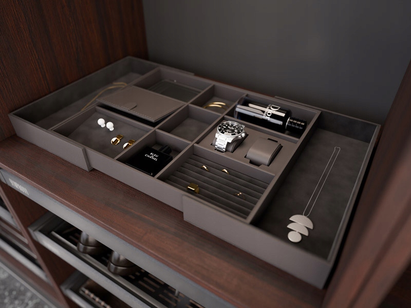 ✅ Organizer do szuflady z serii ATM Symphony, na drobne akcesoria takie jak paski, krawaty, biżuteria czy zegarki, przeznaczony do montażu w szafie lub garderobie.