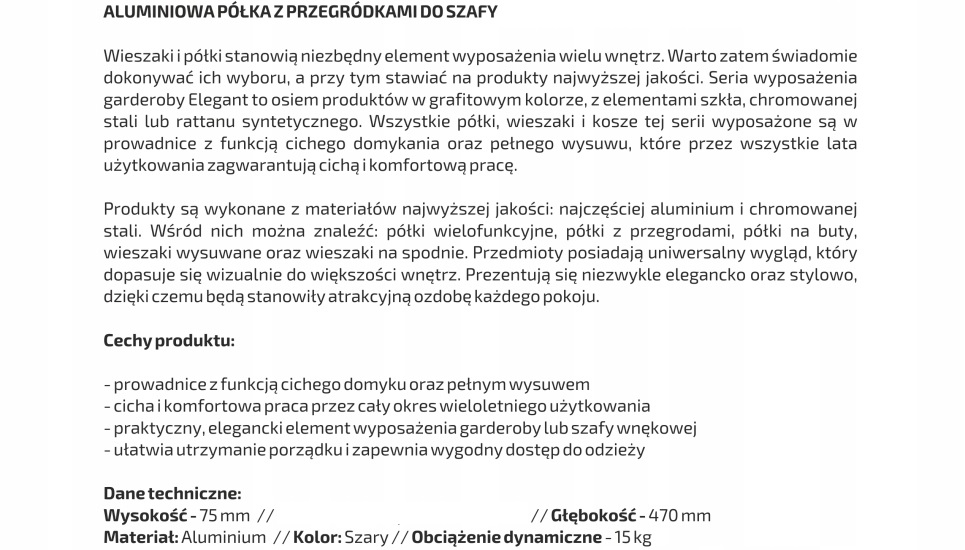 - praktyczny, elegancki element wyposażenia garderoby lub szafy wnękowej