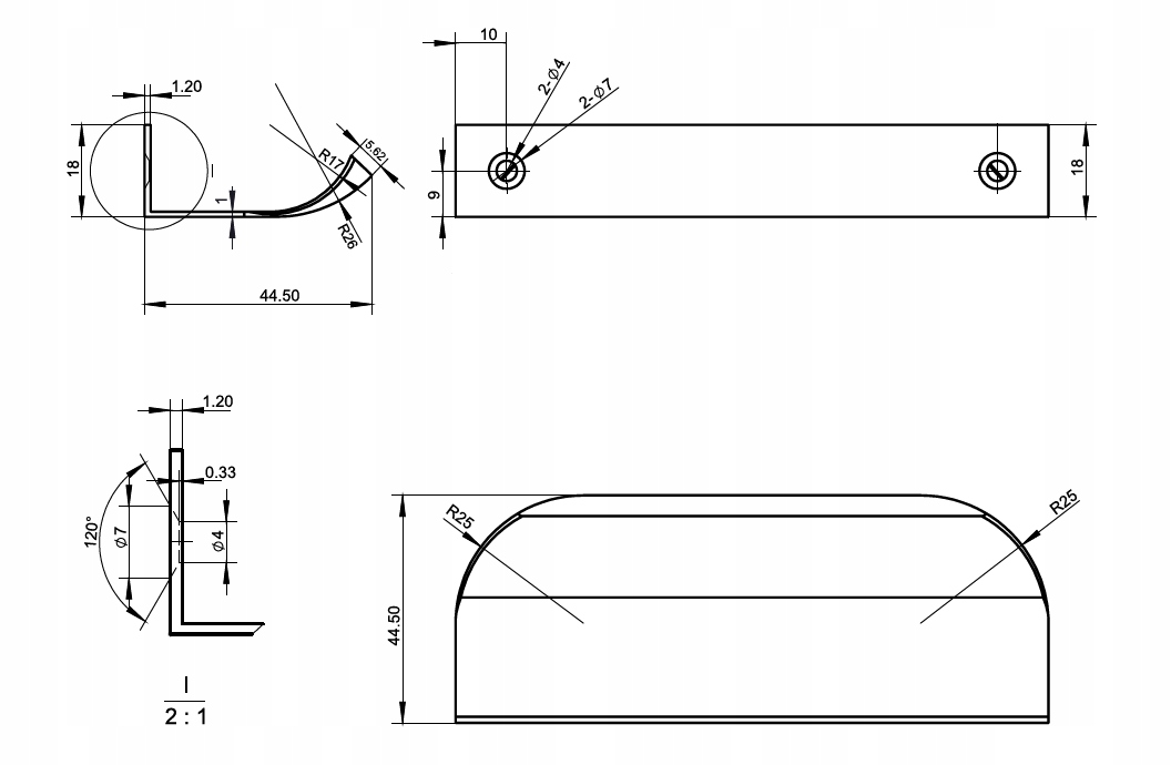 Rozstaw - 1180 mm ; Długość - 1200 mm ; Szerokość - 44,5 mm