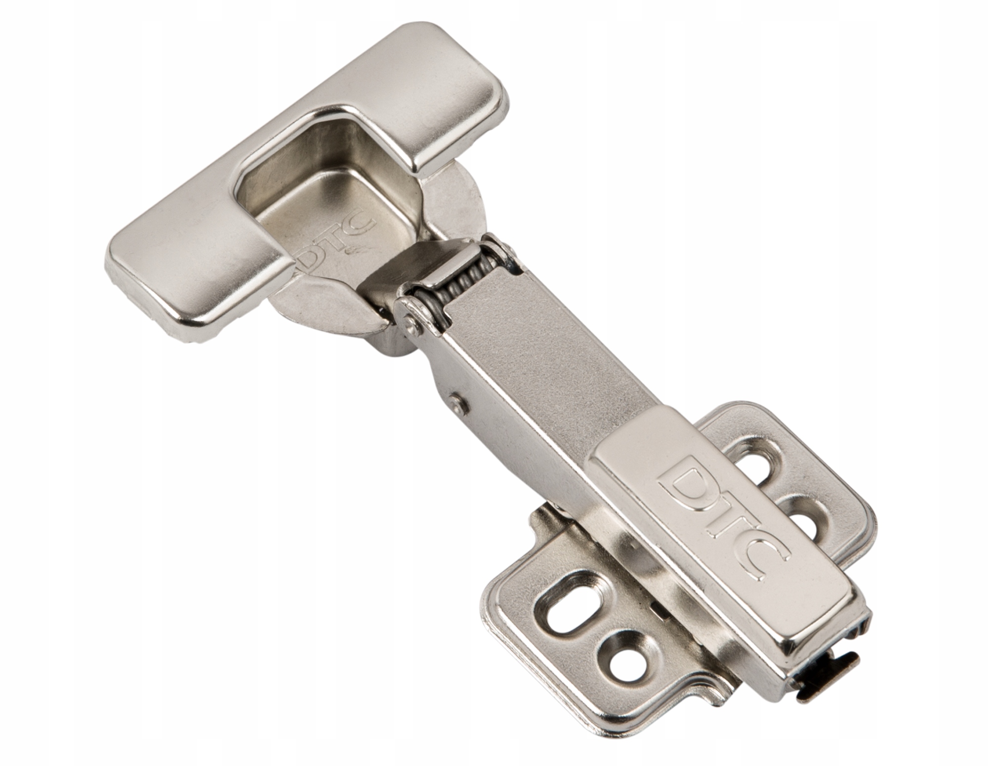 Wysokiej jakości zawias z regulacją w dwóch płaszczyznach: poziomej oraz pionowej. Charakteryzuje się nowym mechanizmem cichego domyku. który aktywuje się przy minimalnym otwarciu frontu. Dwustopniowe działanie zawiasu chroni front szafki oraz sąsiadujące meble lub ścianę.